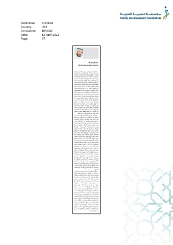 Publication: Al Etihad Country: UAE Circulation: 109,640 Date: 13 April 2025 Page: 07