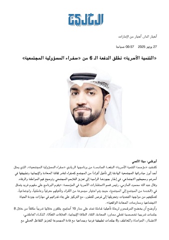 ﻞﺜﻤﻳ يﺬﻟا ،«ﺔﻴﻌﻤﺘﺠﻤﻟا ﺔﻴﻟوﺆﺴﻤﻟا ءاﺮﻔﺳ» يدﺎﻳﺮﻟا ﺎﻬﺠﻣﺎﻧﺮﺑ ﻦﻣ ﺔــﺳدﺎﺴﻟا ﺔــﻌﻓﺪﻟا «ﺔﻳﺮﺳﻷا ﺔﻴﻤﻨﺘﻟا ﺔﺴﺳﺆﻣ» ﺖﻔﺸﻛ
