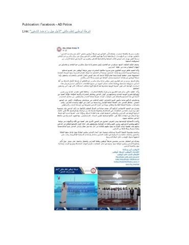 Publication: Facebook – AD Police Link: "نيخدتلا دض عاو ليج لجلأ" ىقتلم مظنت يبظوبأ ةطرش