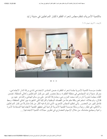 4/30/25, 10:29 AM دﯾاز ﺔﻧﯾدﻣ ﻲﻓ نﯾﻧطاوﻣﻟا رﺎﺑﻛﻟ ةرﻔظﻟا ءارﻌﺷ سﻠﺟﻣ مظﻧﺗ «ﺔﯾرﺳﻷا ﺔﯾﻣﻧﺗﻟا» | ﺔﯾﺗارﺎﻣﻹا دﺎﺣﺗﻻا ﺔﻔﯾﺣﺻ