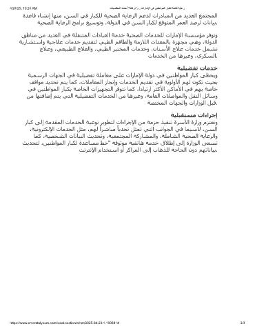 ﺔﯿﺤﺼﻟا ﺔﻳﺎﻋﺮﻟا ﺞﻣاﺮﺑ ﻊﯿﺳﻮﺗو ،ﺔﻟوﺪﻟا ﻲﻓ ﻦﺴﻟا رﺎﺒﻜﻟ ﻊﻗﻮﺘﻤﻟا ﺮﻤﻌﻟا ﺪﺻﺮﻟ تﺎﻧﺎﯿﺑ.