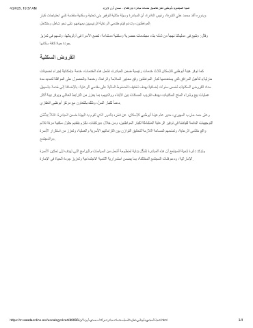 رﺎﺒﻛ تﺎﺟﺎﯿﺘﺣا ﻲﺒﻠﺗ ﺔﻣﺪﻘﺘﻣ ﺔﯿﻨﻜﺳو ﺔﯿﺘﺤﺗ ﻰﻨﺑ ﺮﯿﻓﻮﺘﻟ ﺔﯿﻟﺎﺜﻣ ﺔﻠﯿﺳو ةردﺎﺒﻤﻟا نأ ،ةﺮﺋاﺪﻟا ﺲﯿﺋر ،ﺎﻓﺮﺸﻟا ﻲﻠﻋ ﺪﻤﺤﻣ ﺪﻛأ هروﺪﺑو
