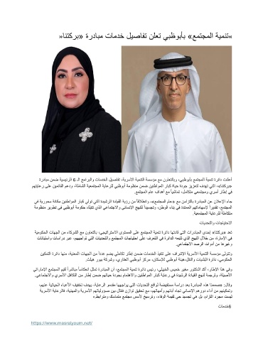ةردابم نمض ةيسيئرلا 6 ـلا جماربلاو تامدخلا ليصافت ،ةيرسلأا ةيمنتلا ةسسؤم عم نواعتلابو ،يبظوبأب عمتجملا ةيمنت ةرئاد تنلعأ