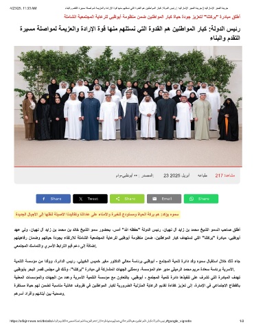 ﺔﻠﻣﺎﺷﻟا ﺔﯾﻌﻣﺗﺟﻣﻟا ﺔﯾﺎﻋرﻠﻟ ﻲﺑظوﺑأ ﺔﻣوظﻧﻣ نﻣﺿ نﯾﻧطاوﻣﻟا رﺎﺑﻛ ةﺎﯾﺣ ةدوﺟ زﯾزﻌﺗﻟ "ﺎﻧﺗﻛرﺑ" ةردﺎﺑﻣ ﻖﻠطأ