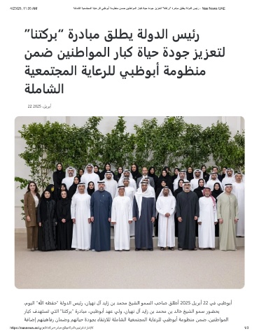 4/23/25, 11:35 AM ﺔﻠﻣﺎﺷﻟا ﺔﯾﻌﻣﺗﺟﻣﻟا ﺔﯾﺎﻋرﻠﻟ ﻲﺑظوﺑأ ﺔﻣوظﻧﻣ نﻣﺿ نﯾﻧطاوﻣﻟا رﺎﺑﻛ ةﺎﯾﺣ ةدوﺟ زﯾزﻌﺗﻟ "ﺎﻧﺗﻛرﺑ" ةردﺎﺑﻣ ﻖﻠطﯾ ﺔﻟودﻟا سﯾﺋر - Nas News UAE