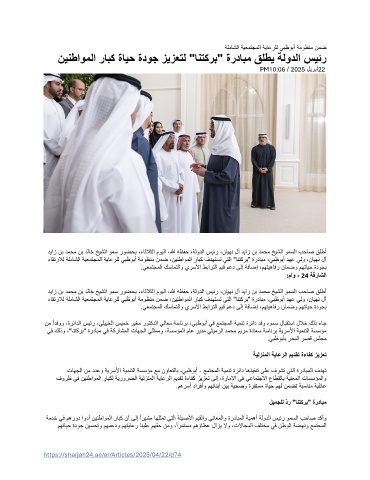 نينطاوملا رابك ةايح ةدوج زيزعتل "انتكرب" ةردابم قلطي ةلودلا سيئر