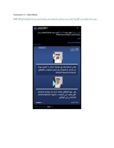 Publication: X – Wam News Link: # ةلماشلا ةيعمتجملا ةياعرلل يبظوبأ ةموظنم نمض نينطاوملا رابك ةايح ةدوج زيزعتل "انتكرب#" ةردابم قلطي ةلودلا_سيئر