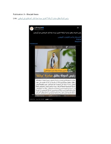 Publication: X – Sharjah News Link: يبظوبأ يف نينطاوملا رابك ةايح ةدوج زيزعتل "انتكرب" ةردابم قلطي ةلودلا سيئر
