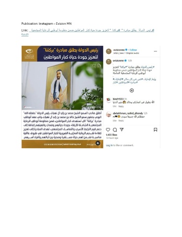 Publication: Instagram – Evision MN Link: ةيعمتجملا ةياعرلل يبظوبأ ةموظنم نمض نينطاوملا رابك ةايح ةدوج زيزعتل "انتكرب# " ةردابم قلطي ةلودلا_سيئر# ةلماشلا