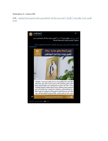 Publication: X – Evision MN Link: ةيعمتجملا ةياعرلل يبظوبأ ةموظنم نمض نينطاوملا رابك ةايح ةدوج زيزعتل "انتكرب# " ةردابم قلطي ةلودلا_سيئر# ةلماشلا
