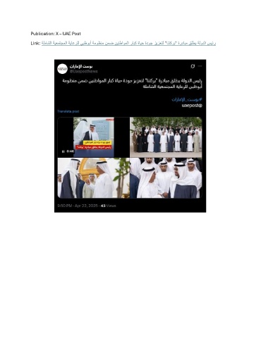 Publication: X – UAE Post Link: ةلماشلا ةيعمتجملا ةياعرلل يبظوبأ ةموظنم نمض نينطاوملا رابك ةايح ةدوج زيزعتل "انتكرب" ةردابم قلطي ةلودلا سيئر