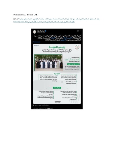 Publication: X – Forsan UAE Link: " ةردابم قلطي ةلودلا_سيئر# .."ءانبلاو مدقتلا ةريسم ةلصاومل ةميزعلاو ةدارلإا ةوق اهنم مهلتسن يتلا ةودقلا مه نينطاوملا رابك ةلماشلا ةيعمتجملا ةياعرلل يبظوبأ# ةموظنم نمض نينطاوملا رابك ةايح ةدوج زيزعتل "انتكرب#"