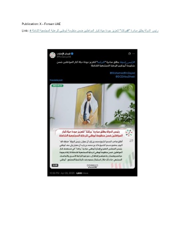 Publication: X – Forsan UAE Link: # ةلماشلا ةيعمتجملا ةياعرلل يبظوبأ ةموظنم نمض نينطاوملا رابك ةايح ةدوج زيزعتل "انتكرب#" ةردابم قلطي ةلودلا_سيئر