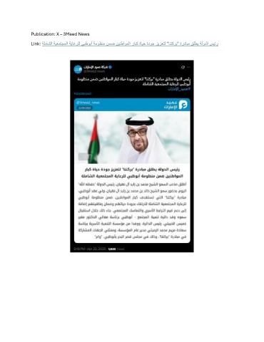 Publication: X – 3Meed News Link: ةلماشلا ةيعمتجملا ةياعرلل يبظوبأ ةموظنم نمض نينطاوملا رابك ةايح ةدوج زيزعتل "انتكرب" ةردابم قلطي ةلودلا سيئر