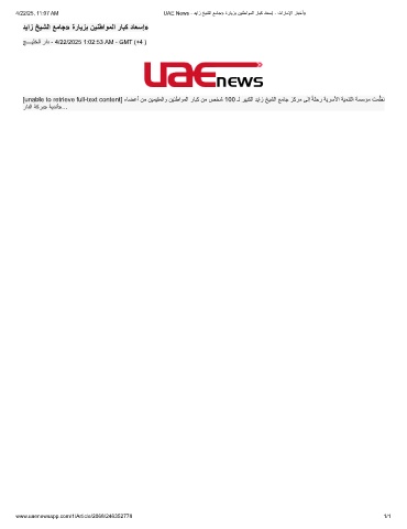 4/22/25, 11:07 AM UAE News - دﯾاز ﺦﯾﺷﻟا ﻊﻣﺎﺟ» ةرﺎﯾزﺑ نﯾﻧطاوﻣﻟا رﺎﺑﻛ دﺎﻌﺳإ - تارﺎﻣﻹا رﺎﺑﺧأ»