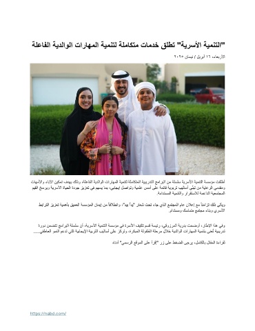 تاهم لأاو ءابلآا نيكمت فدهب كلذو ،ةلعافلا ةيدلاولا تاراهملا ةيمنتل ةلماكتملا ةيبيردتلا جماربلا نم ةلسلس ةيرسلأا ةيمنتلا ةسسؤم تقلطأ