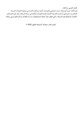 ﺺﺋﺎﺼﺨﻟا ﻠﻋ ﺰﻛﺮﺗ ،ﺔﻘﻫاﺮﻤﻟا ﺔﻠﺣﺮﻣ ﻓ ﺔﻳﺪﻟاﻮﻟا تارﺎﻬﻤﻟا ﺔﻴﻤﻨﺘﺑ ﺔﺻﺎﺨﻟا ﺔﻴﺒﻳرﺪﺘﻟا ةروﺪﻟا نأ ﻟإ ةﺮﻴﺸﻣ ،ةﺮﺻﺎﻌﻤﻟا