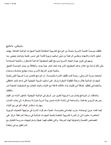 ﺔﯾوﺑرﺗﻟا تﺎﯾدﺣﺗﻟا ﺔﮭﺟاوﻣ ﻲﻓ ةرﺳﻷا دارﻓأ مﻋد ﺔﯾﻣھأ ،ﺔﺳﺳؤﻣﻟﺎﺑ ﻲﻋﺎﻣﺗﺟا بردﻣ ،ةدﺎﻣﺣوﺑأ نﯾرﻋ تدﻛأ ﺎﻣﯾﻓ