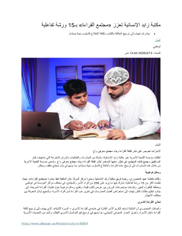 ةيلعافت ةشرو 15 ـب »ةءارقلا عمتجم« ززعت ةيناسنلإا دياز ةبتكم