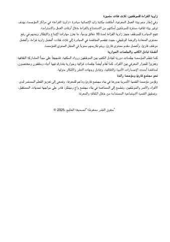 فﺪﻬﺑ ،ﺔﺴﺳﺆﻤﻟا ﺰﻛاﺮﻣ ﻓ «ةءاﺮﻘﻟا ﺔﻳواز» ةردﺎﺒﻣ ﺔﻴﻧﺎﺴﻧﻹا ﺪﻳاز ﺔﺒﺘﻣ ﺖﻘﻠﻃأ ،ﺔﻴﻓﺮﻌﻤﻟا ﻞﻤﻌﻟا ﺔﺌﻴﺑ ﻢﻋد رﺎﻃإ ﻓو