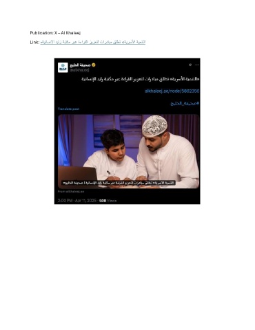 Publication: X – Al Khaleej Link: « ةيناسنلإا دياز ةبتكم ربع ةءارقلا زيزعتل تاردابم قلطت »ةيرسلأا ةيمنتلا