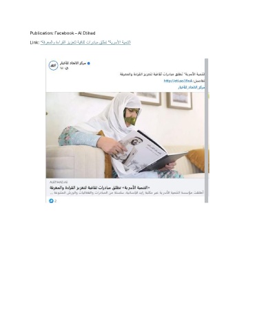 Publication: Facebook – Al Etihad Link: " ةفرعملاو ةءارقلا زيزعتل ةيفاقث تاردابم قلطت "ةيرسلأا ةيمنتلا