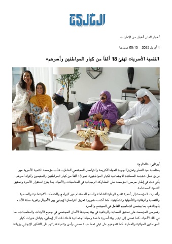 ﺮﺒﻋ ﺔﻳﺮﺳﻷا ﺔﻴﻤﻨﺘﻟا ﺔﺴﺳﺆﻣ تﺄﻨﻫ ..ﻞﻋﺎﻔﻟا ﻌﻤﺘﺠﻤﻟا ﻞﺻاﻮﺘﻟاو ﺔﻤﻳﺮﻟا ةﺎﻴﺤﻟا ةدﻮﺠﻟ ًاﺰﻳﺰﻌﺗو ﺮﻄﻔﻟا ﺪﻴﻋ ﺔﺒﺳﺎﻨﻤﺑ