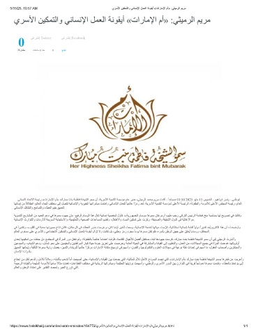 جﺎﺘﺣا ﻦﻣ ﻞﻜﻟ ﻢﻋﺪﻟاو ﻞﻣﻸﻟ ًاذﻼﻣو ،ﮫﻠﻤﻛﺄﺑ ﺐﻌﺸﻟ ً ﺎﻣأ ﺖﺤﺒﺻأ ﻰﺘﺣ ،ﺔﯿﻧﺎﺴﻧﻹاو ةدﺎﯿﻘﻟا ﻦﯿﺑ ﺖﻌﻤﺟ ﻲﺘﻟا ،ﺔﯿﻟﺎﺜﻤﻟا مﻸﻟ ﻞﺜﻣﻷا جذﻮﻤﻨﻟا ﺪﺴﺠﺗ ﻲﺘﻟا «تارﺎﻣﻹا مأ» كرﺎﺒﻣ ﺖﻨﺑ ﺔﻤطﺎﻓ ﺔﺨﯿﺸﻟا ﻮﻤﺴﺑ ﺎھﺮﺨﻓ ﻦﻋ ﺖﺑﺮﻋأو