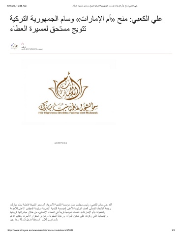 5/15/25, 10:48 AM ءﺎطﻌﻟا ةرﯾﺳﻣﻟ ﻖﺣﺗﺳﻣ ﺞﯾوﺗﺗ ﺔﯾﻛرﺗﻟا ﺔﯾروﮭﻣﺟﻟا مﺎﺳو «تارﺎﻣﻹا مأ» ﺢﻧﻣ :ﻲﺑﻌﻛﻟا ﻲﻠﻋ