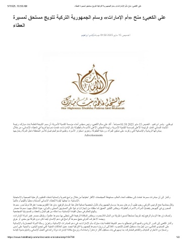 5/15/25, 10:50 AM ءﺎطﻌﻟا ةرﯾﺳﻣﻟ ﻖﺣﺗﺳﻣ ﺞﯾوﺗﺗ ﺔﯾﻛرﺗﻟا ﺔﯾروﮭﻣﺟﻟا مﺎﺳو «تارﺎﻣﻹا مأ» ﺢﻧﻣ :ﻲﺑﻌﻛﻟا ﻲﻠﻋ