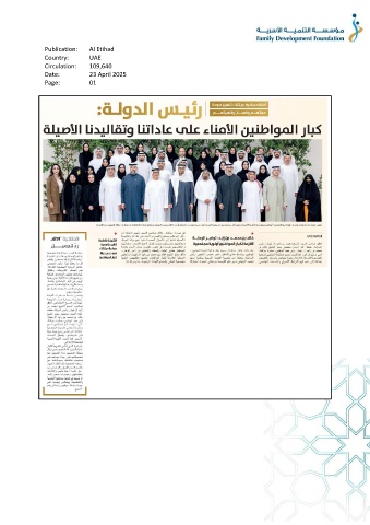 Publication: Al Etihad Country: UAE Circulation: 109,640 Date: 23 April 2025 Page: 01