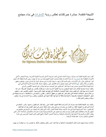يعامتجلاا رودلاو ،مهمعدو نينطاوملا رابك ةياعر ىلع ةمئاقلا دوهجلا ةفاك »تاراملإا مأ« كرابم تنب ةمطاف ةخيشلا ّ ومس تنّمثو