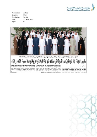 Publication: Al Fajr Country: UAE Circulation: 34,596 Date: 23 April 2025 Page: 01