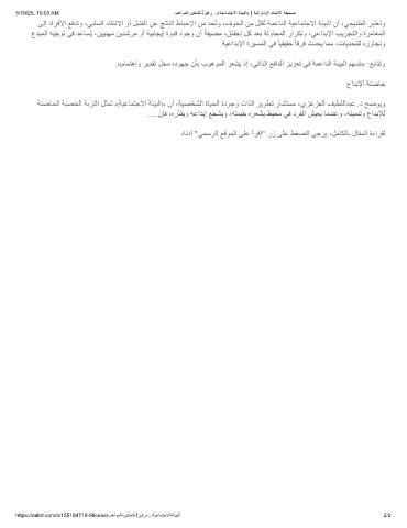 .....نﺈﻓ ،هرّﺪﻘﯾو ﮫﻋاﺪﺑإ ﻊﺠﺸﯾو ،ﮫﺘﻤﯿﻘﺑ هﺮﻌﺸﯾ ﻂﯿﺤﻣ ﻲﻓ دﺮﻔﻟا ﺶﯿﻌﯾ ﺎﻣﺪﻨﻋو ،ﮫﺘﯿﻤﻨﺗو عاﺪﺑﻺﻟ