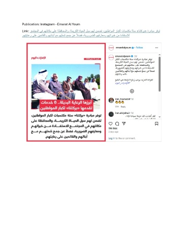 Publication: Instagram - Emarat Al Youm Link: ﻊﻣﺗﺟﻣﻟا ﻲﻓ مﮭﺗﻧﺎﻛﻣ ﻰﻠﻋ ﺔظﻓﺎﺣﻣﻟاو ،ﺔﻣﯾرﻛﻟا ةﺎﯾﺣﻟا لﺑﺳ مﮭﻟ نﻣﺿﺗ ،نﯾﻧطاوﻣﻟا رﺎﺑﻛﻟ تﺎﺑﺳﺗﻛﻣ ﺔﺗﺳ «ﺎﻧﺗﻛرﺑ» ةردﺎﺑﻣ رﻓوﺗ .مﮭﺗﯾﺎﻋر ﻰﻠﻋ نﯾﻣﺋﺎﻘﻟاو مﮭﺋﺎﻧﺑأ ﻊﻣ مﮭﻠﻣﺷ ﻊﻣﺟ نﻋ ًﻼﺿﻓ ،ﺔﯾرورﺿﻟا مﮭﻓرﺎﻌﻣو مﮭﺗارﺑﺧ نﻣ ةدﺎﻔﺗﺳﻼﻟ