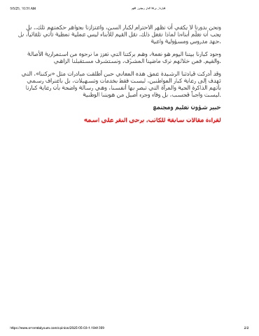ﻞﺑ ..ﻚﻠﺗ ﻢﮫﺘﻤﻜﺣ ﺮھاﻮﺠﺑ ﺎﻧزاﺰﺘﻋاو ،ﻦﺴﻟا رﺎﺒﻜﻟ ماﺮﺘﺣﻻا ﺮﮫﻈﻧ نأ ﻲﻔﻜﻳ ﻻ ﺎﻧروﺪﺑ ﻦﺤﻧو