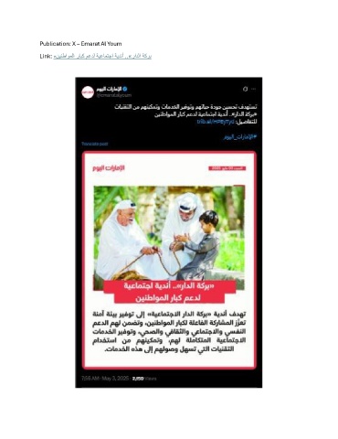 Publication: X – Emarat Al Youm Link: «نينطاوملا رابك معدل ةيعامتجا ةيدنأ ..»رادلا ةكرب