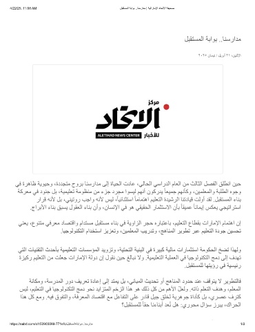 4/22/25, 11:08 AM لﺑﻘﺗﺳﻣﻟا ﺔﺑاوﺑ ..ﺎﻧﺳرادﻣ | ﺔﯾﺗارﺎﻣﻹا دﺎﺣﺗﻻا ﺔﻔﯾﺣﺻ
