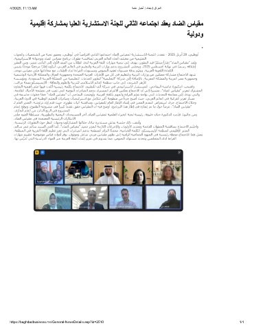 ﺔﯾﻣﯾﻠﻗإ ﺔﻛرﺎﺷﻣﺑ ﺎﯾﻠﻌﻟا ﺔﯾرﺎﺷﺗﺳﻻا ﺔﻧﺟﻠﻟ ﻲﻧﺎﺛﻟا ﮫﻋﺎﻣﺗﺟا دﻘﻌﯾ دﺎﺿﻟا سﺎﯾﻘﻣ