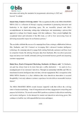 Imaad Joma, Founder of JGroup, stated: “This recognition for Blis at the MMA SMARTIES