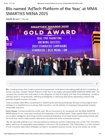 6/3/25, 11:17 AM Blis named ‘AdTech Platform of the Year,’ at MMA SMARTIES MENA 2025