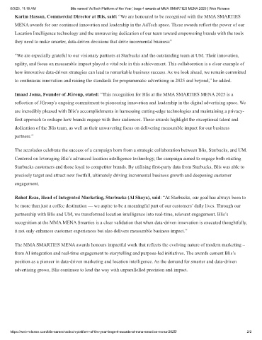 6/3/25, 11:18 AM Blis named ‘AdTech Platform of the Year,’ bags 4 awards at MMA SMARTIES MENA 2025 | Web Release