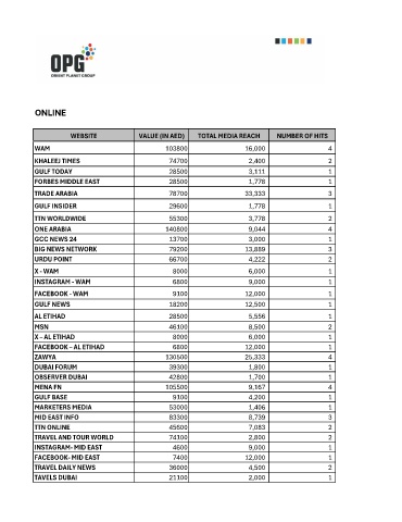 WEBSITE VALUE (IN AED) TOTAL MEDIA REACH NUMBER OF HITS
