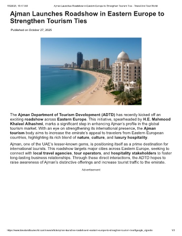 10/28/25, 10:47 AM Ajman Launches Roadshow in Eastern Europe to Strengthen Tourism Ties - Travel And Tour World