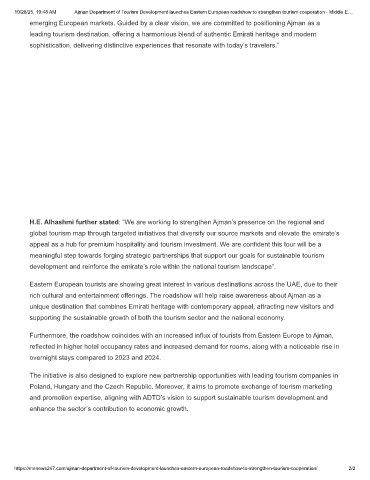 10/28/25, 10:48 AM Ajman Department of Tourism Development launches Eastern European roadshow to strengthen tourism cooperation - Middle E…