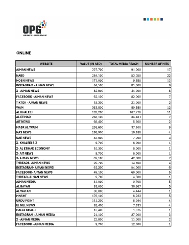 WEBSITE VALUE (IN AED) TOTAL MEDIA REACH NUMBER OF HITS