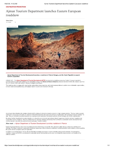 10/27/25, 11:52 AM Ajman Tourism Department launches Eastern European roadshow