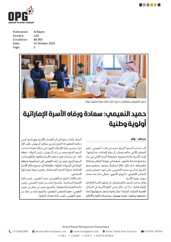 Publication: Al Bayan Country: UAE Circulation: 88,000 Date: 22 October 2025 Page: 5
