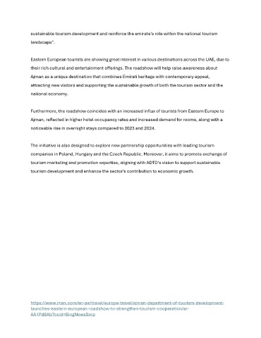 sustainable tourism development and reinforce the emirate's role within the national tourism