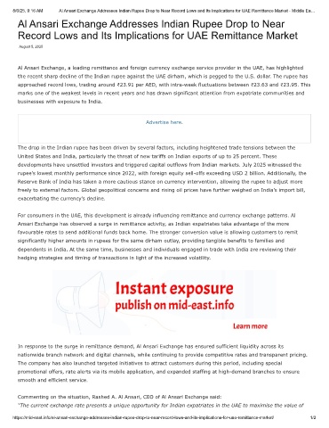 8/6/25, 9:16 AM Al Ansari Exchange Addresses Indian Rupee Drop to Near Record Lows and Its Implications for UAE Remittance Market - Middle Ea…